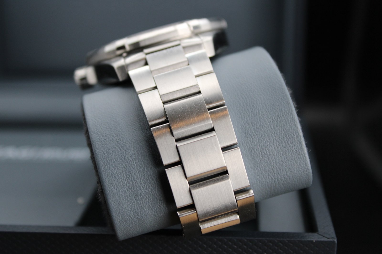 This stunning Aquaracer is a great example from the quartz Aquaracer range, it features a simplistic black dial that is complimented beautifully with a silver bezel featuring black number. The watch has a stainless steel case and bracelet. The watch does show some signs of wear throughout with scratches to the bracelet and clasp. This 41mm men’s timepiece comes complete with its original box and papers, making it a perfect addition for both collectors and everyday enthusiasts.