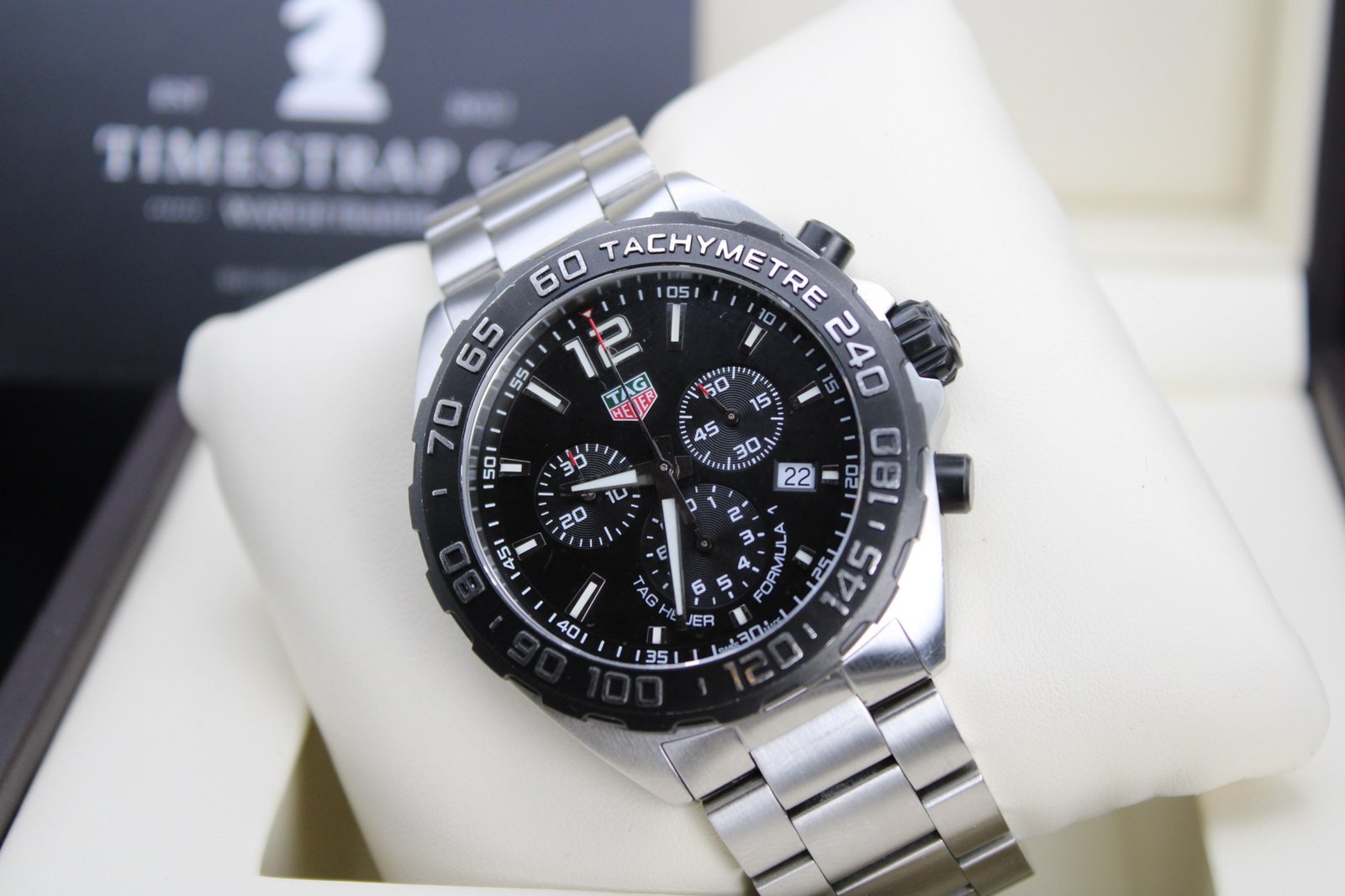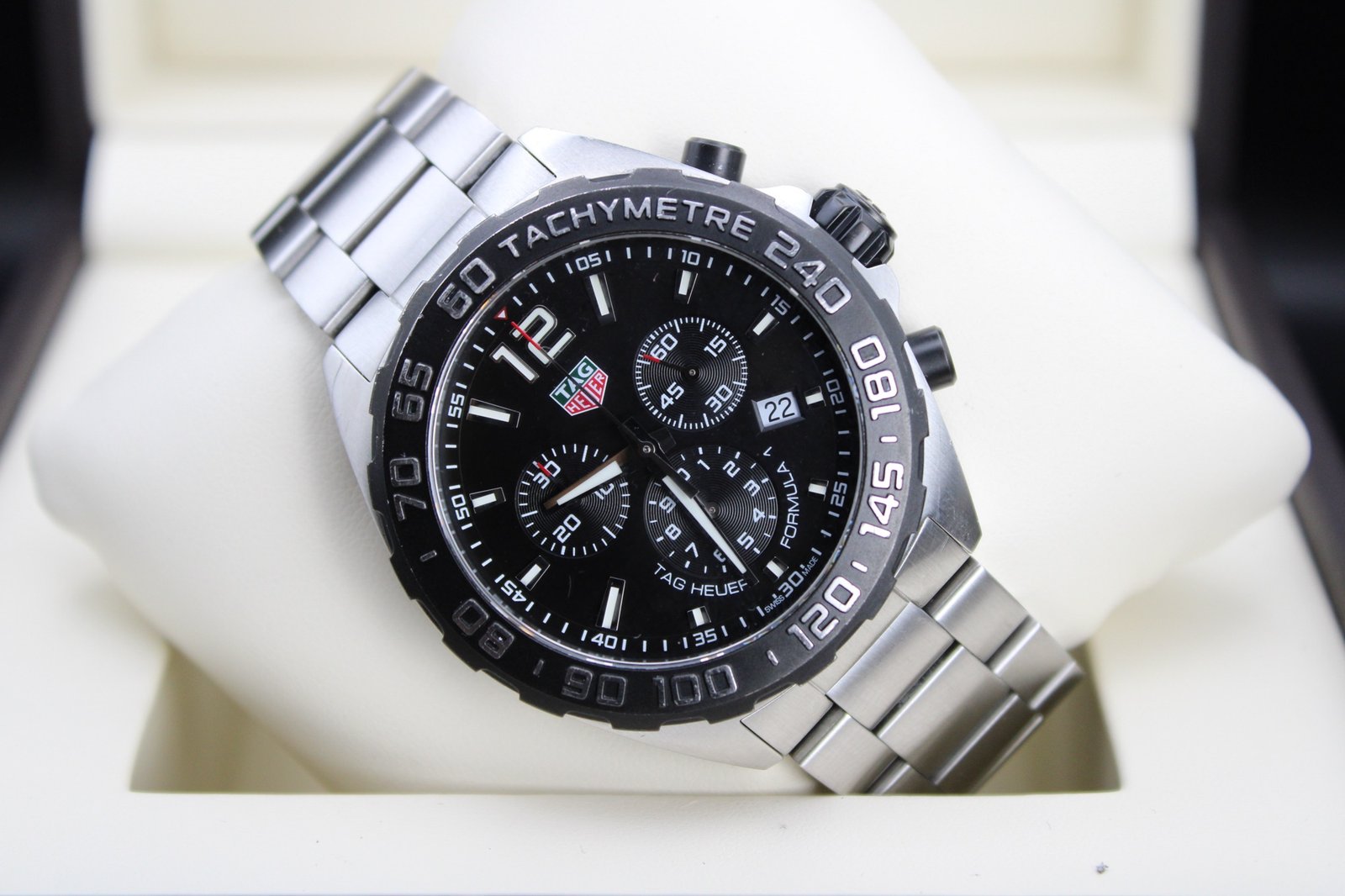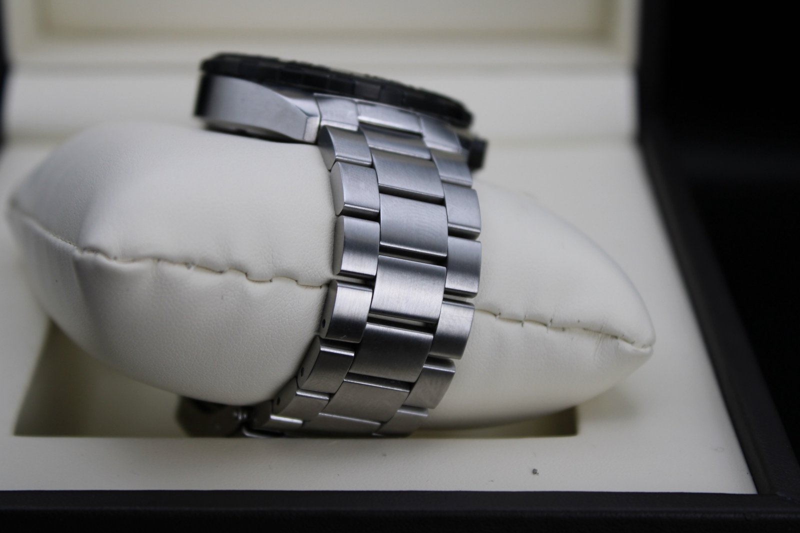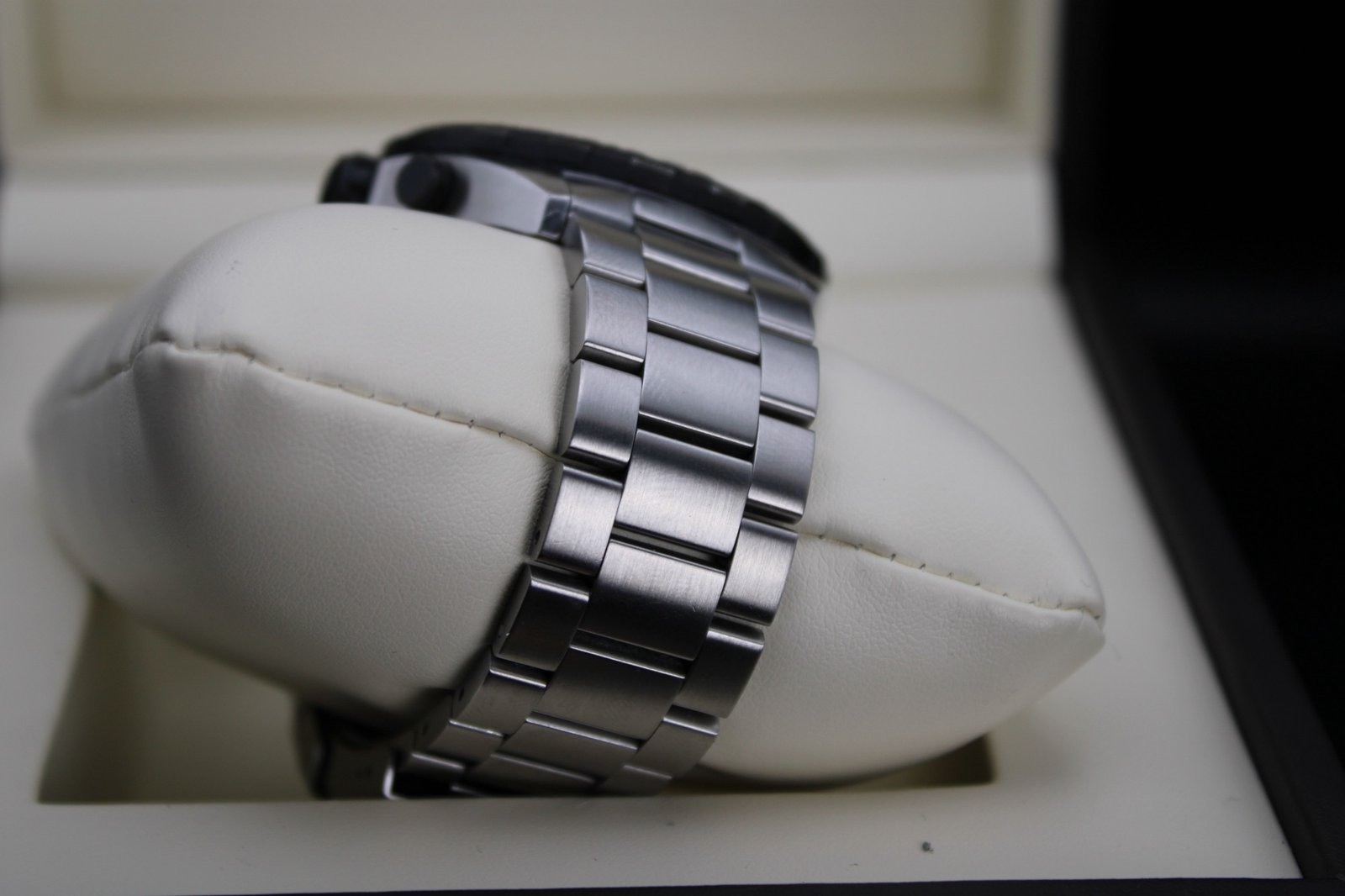 This is a beautiful example from the Formula 1 Chronograph range, this watch is suitable for all occasions and can be worn daily or used as a special occasions piece. It features a stunning black dial and bezel and is placed on a steel bracelet. It is a Chronograph which means it has many additional features over a standard watch such as a second, minute and hour counting feature as well as a stop watch feature .This 43mm men’s timepiece comes complete with its original box and papers, making it a perfect addition for both collectors and everyday enthusiasts.