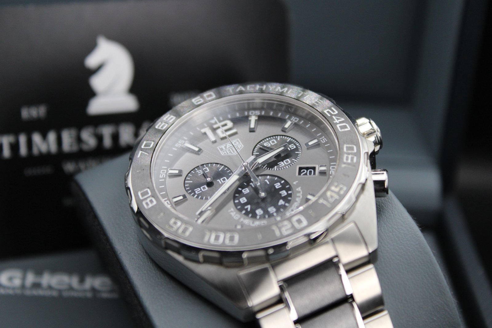 This is certainly a personal favourite hailing from the Formula 1 range by Tag Heuer especially with the steel and ceramic bracelet which has recently been polished so looks amazing! The watch itself features a grey dial with a black ceramic bezel with a steel and ceramic bracelet and steel clasp. This is a very popular model from the Formula 1 range and highly sought after so don’t tend to sit around for long especially with this bracelet! This 43mm men’s timepiece comes complete with its original box, papers and full links making it a perfect addition for both collectors and everyday enthusiasts.